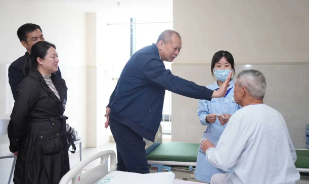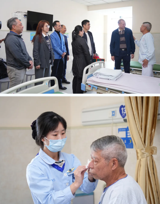 莞城街道党工委员萧健峰亲切问候尹先生术后的情况,并和医护人员详细了解尹先生两只眼睛的白内障情况。尹先生他双眼白内障多年,7月10日做左眼白内障手术,术前视力为 0.12,术后恢复至 0.6;11月20日做右眼白内障手术,术前视力0.05,术后0.6,目前术后恢复情况良好。后续爱尔眼科医院也会继续跟踪尹先生的情况。